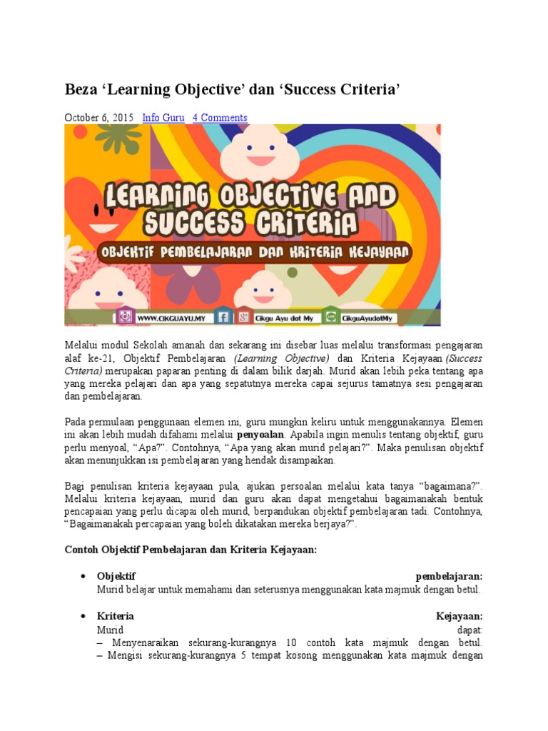 Objektif Pembelajaran Vs Kriteria Kejayaan Pdf